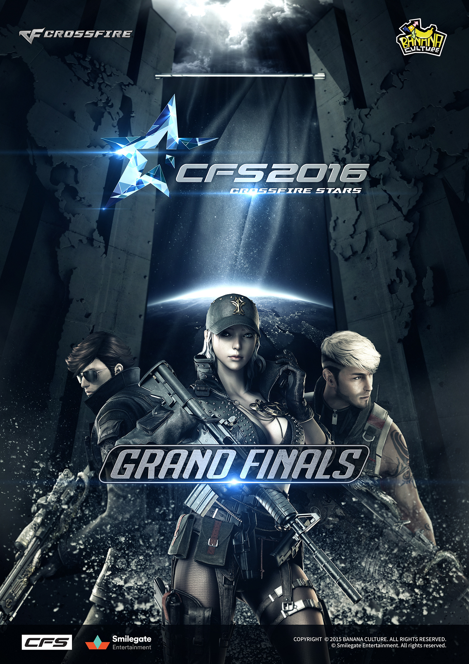 크로스파이어 스타즈(CFS)는 세계적으로 많은 게이머들의 사랑을 받고있는 크로스파이어의 대표 글로벌 e-sports 이벤트로 바나나컬쳐가 진행한 2016년 대회는 기존 흥행 기록을 갈아치우며 뜨거운 주목을 받았습니다. 중국 쑤저우에서 진행된 CFS 2016에서는 전세계 11개, 지역 12개의 최고 프로팀들이 총 상금 630,000달러 및 월드 챔피언 타이틀을 차지하기 위한 경쟁을 치렀습니다. 한국, 일본, 중국, 북미, 유럽뿐 아니라 인도네시아, 브라질, 필리핀, 베트남, 러시아, 남미에 이르기까지 세계 각국에서 대표 선수들을 보내며 세계적인 게임 축제로 발돋움했습니다. 중계 또한 유튜브, 트위치tv 등 각 플랫폼들을 통하여 중국어, 영어, 포르투갈어, 러시아어, 베트남어, 스페인어 등 다양한 언어로 송출이 되었습니다. 2016 CFS의 누적 순 시청자수는 2,558만명으로 CFS 2015 당시 1,050만 명과 비교해 144% 증가하는 성과를 보였고 이는 글로벌 e-sports로서의 CFS를 한걸음 더 나아가게 했다는 평가를 받았습니다.